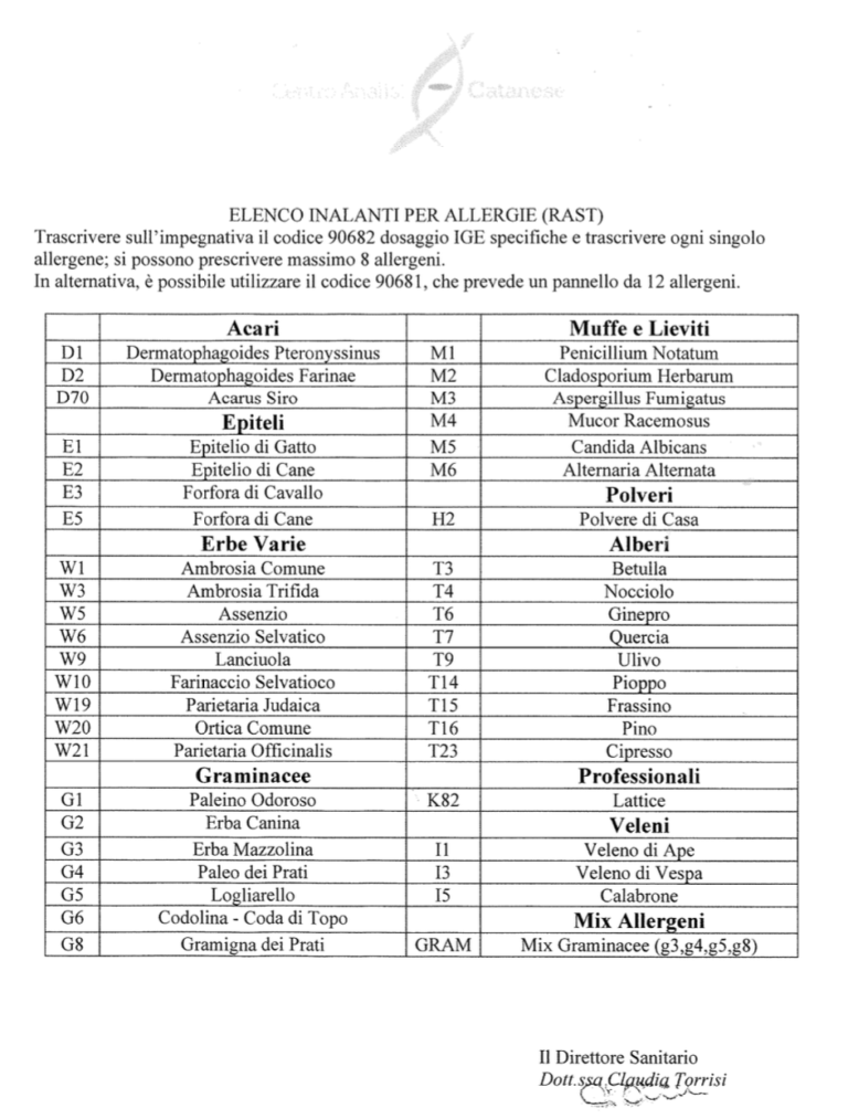 Gli esami di laboratorio vanno eseguiti a digiuno (almeno 8 – 12 ore).